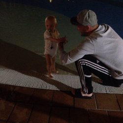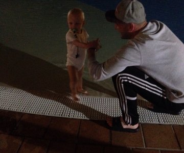 Først nu er han begyndt at vænne sig til poolen. Han har ikke rigtigt ville i, mere gå på kanten af poolen og kun meget kort i med begge fødder. Men igår fik jeg ham i poolen, med vand op til numsen – så han laver fremskridt hehe. Men han er alligevel elle vild med vandet og griner rigtig meget, det er så skønt at se og høre at han hygger sig. Min kæreste og svigerforældre er blevet lidt forbrændte og røde på ryggen og skuldrene, jeg er dog ikke. Mega heldigt, for det plejer jeg hehe!