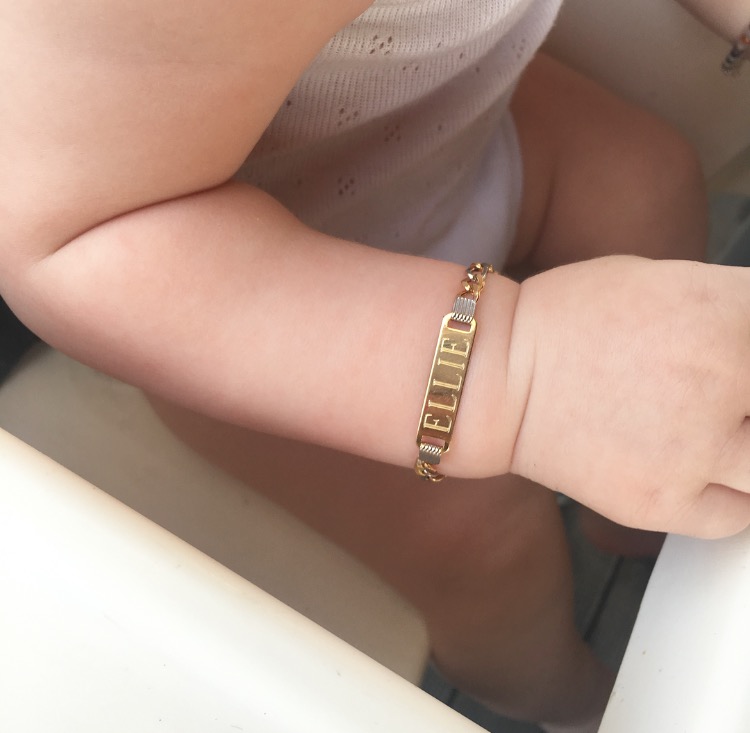 Ellie har fået sit første guld smykke og hvor er det bare smukt! Hun har været så heldig at få et armbånd i guld og hvidguld med en plade hvor hendes smukke navn står indgraveret. Hun har fået armbåndet i gave af to guldsmede fra Tyrkiet, som er gode venner med min mor og hendes mand. Vi er meget taknemmelig over at hun har fået så fin en gave af...